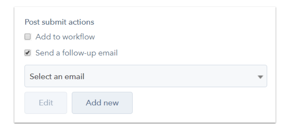 - Configurez un e-mail de suivi dans les options de formulaire de votre page HubSpot